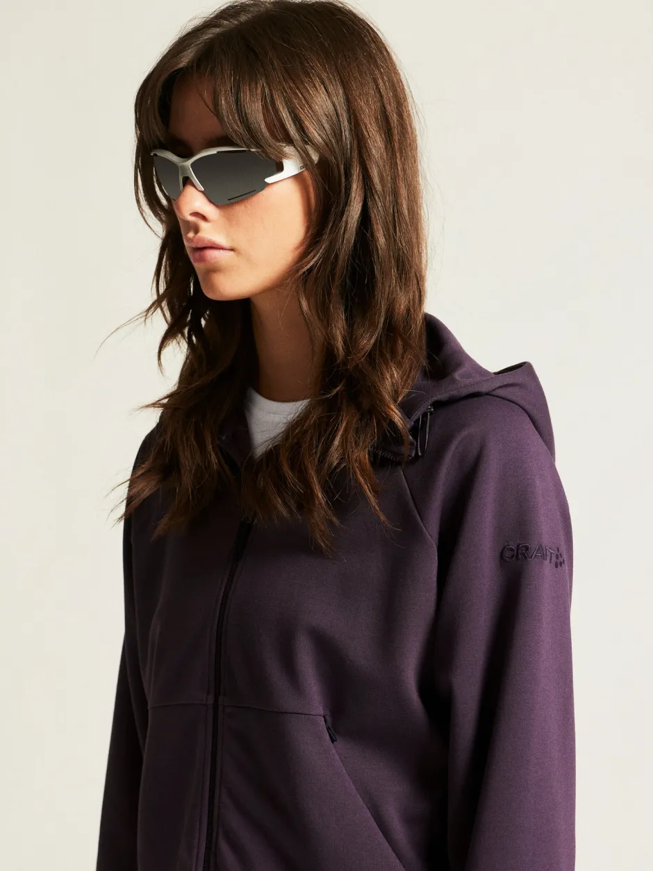 Experience ultimate comfort with the women’s ADV Join Full Zip Hoodie. Made from premium 320 GSM cotton and polyester jersey, this hoodie boasts a densely knitted two-face design. The wider fit ending at the hip and slightly dropped raglan sleeves enhance your style. The plastic zipper at the front and kangaroo pocket with reverse zippers offer added convenience, while the adjustable hood with an elastic cord and stopper in a loop, lined with shell fabric, increases comfort. Embellished with the Craft embroidered logo on the left sleeve, this hoodie exudes subtle elegance.