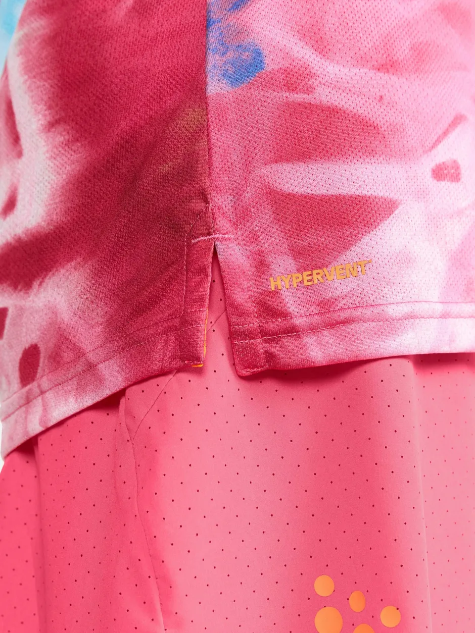 Revamp your athletic gear with Craft’s Women’s Pro Hypervent Jacquard Running Tee! Boasting short sleeves, it allows runners maximum movement. Fashioned in all-over printed Jacquard fabric with Craft’s iconic six dot logo on the front and a small logo at the back, this t-shirt is perfect for that comfort during rigorous workouts. To prevent chafing, it features a taped front neck hole. Made with 100% recycled polyester, it champions eco-friendly fitness wear.