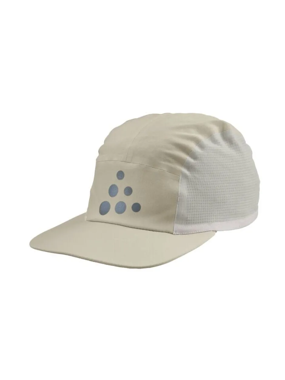 Soft packable running cap with mesh panels & taped seams